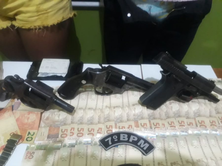 O veículo Pálio de cor prata foi abordado pelos agentes, que pediram para os passageiros e o motorista saírem. Durante a revista, foram encontrados uma pistola, um carregador com 6 munições intactas, 2 revólveres, 12 cartuchos, R$ 2.175 em espécie (divididos em volumes), dois cartões de crédito da Caixa Econômica Federal e 1073 gramas de substância que aparentava ser maconha.