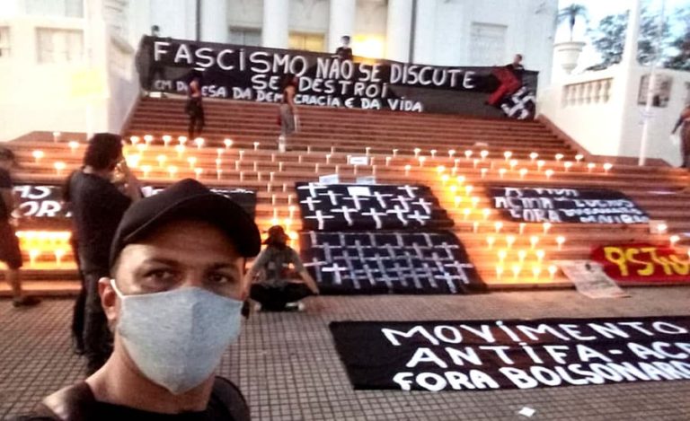 O Movimento Antifa (Movimento Anti facismo) do Acre estendeu várias faixa e acendeu centenas de velas em Frente ao Palácio Rio Branco, na tarde deste domingo (7) para protestar contra o governo do presidente Jair Bolsonaro.