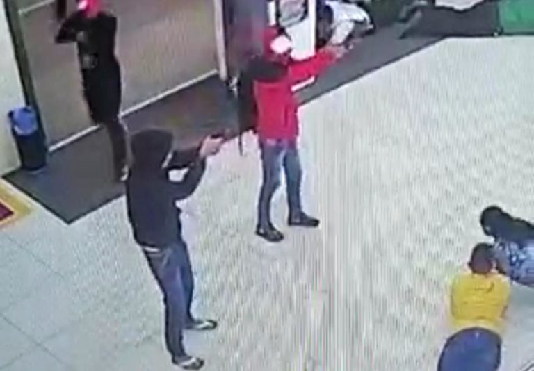 Durante o ocorrido, o profissional continuou no bagageiro. O assalto foi registrado pelo circuito de câmeras da loja, que mostram o momento em que os criminosos rendem os clientes e funcionários do supermercado, mandam todos ficarem no chão e se dirigirem para pegar o dinheiro dos caixas.