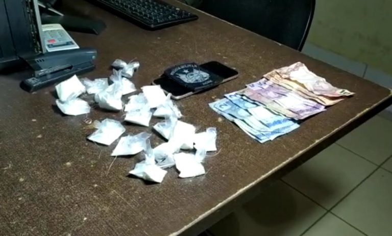 Policiais militares do 3° Batalhão estavam em patrulhamento de rotina, quando avistaram os dois em via pública em atitude suspeita. Ao fazer a abordagem foi encontrado 15 papelotes de pasta a base de cocaína e 62 reais em espécie.