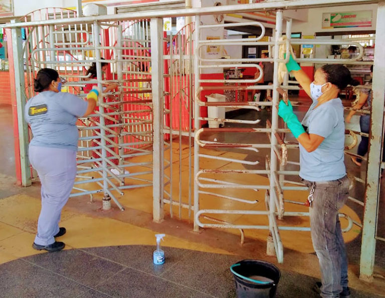“A desinfecção já era feita, mas com o aumento do fluxo de pessoas no terminal estamos aumentando também os cuidados. Temos uma equipe que a cada 30 minutos faz a higienização das catracas de entrada e também de saída. Essas pessoas estão munidas de borrifador contendo uma mistura de água sanitária e água normal e panos limpos”, explicou Sawana.