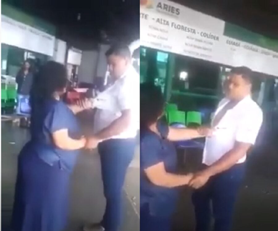 O fato foi filmado por passageiros, que registraram o momento em que ela, persegue, segura e bate no rapaz, que só se defende. Nas imagens é possível ver que ela pega um bastão e começa a quebrar os equipamentos que estavam no balcão de atendimento.