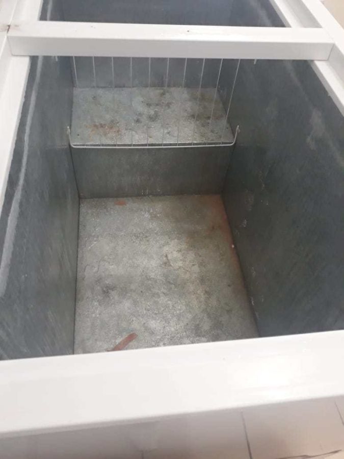 Uma foto do freezer que guarda os gêneros alimentícios do hospital, mostra o eletrodoméstico totalmente vazio.