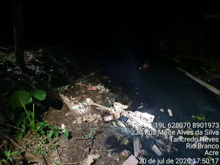 No início da noite de segunda-feira (20), uma ligação ao Ciosp dava conta de que na rua Meire Alves da Silva, no bairro Tancredo Neves teria um crânio de uma pessoa próximo a um córrego. Diante da denúncia, policiais militares e uma equipe do Instituto Médico Legal de Rio Branco, foram enviados ao local.