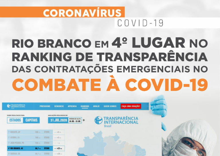 Rio Branco Ă© 4ÂȘ capital no ranking de transparĂȘncia em contrataçÔes emergenciais na pandemia