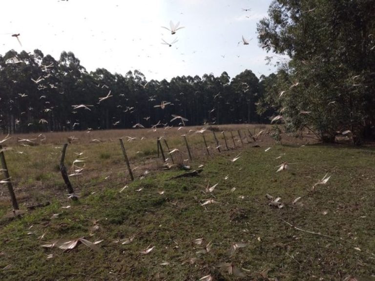 O Serviço Nacional de Saúde e Qualidade Agroalimentar (Senasa, na sigla em espanhol), uma agência do governo argentino, foi informada sobre uma quarta nuvem de gafanhotos em Salta, na Argentina. Segundo o órgão, o alerta foi feito por um produtor na sexta-feira (31). [Veja o vídeo abaixo].