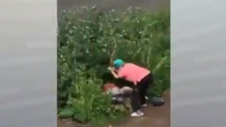 Nas imagens, a senhora pega um pedaço de pau e começa a dar pauladas nos pervertidos. Indignada, ela bate, bate, bate e depois vai embora reclamando da situação.