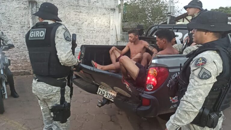 Em Rio Branco, três homens foram presos em atitude suspeita, na tarde desta quinta-feira (27), enquanto trafegavam pelo bairro Baixa da Colina. Durante patrulhamento de rotina, o Grupamento de Intervenções Rápidas e Ostensivas (Giro), da Polícia Militar (PM), avistou os suspeitos na Travessa Flaviano Melo com um equipamento de som.