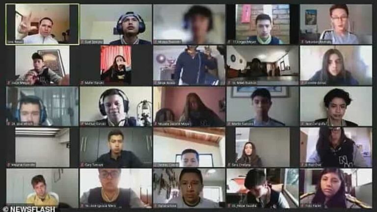 Nas imagens é possível ver a adolescente em frente ao computador, com a professora e mais de 20 colegas. A certa altura, entram quatro homens no quarto da aluna, ela levanta-se assustada e a tela do laptop bloqueia.