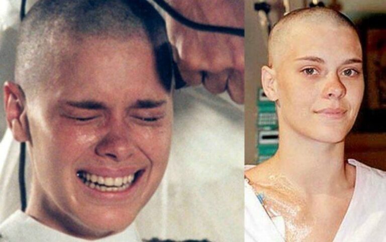 Carolina Dieckmann à época em que raspou a cabeça em cena em “Laços de Família”. Foto: Reprodução – Instagram