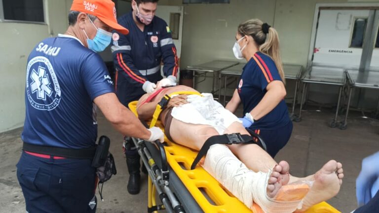 O Serviço de Atendimento Móvel de Urgência (Samu) foi acionado e encaminhou a vítima ao pronto-socorro de Rio Branco, em estado de saúde estável. O homem sofreu trauma no abdômen e tórax, e uma fratura no pé direito.