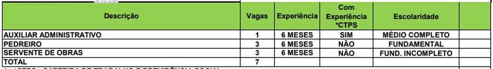 O Sistema Nacional de Emprego do Acre (Sine) disponibiliza sete vagas para diversas áreas nesta terça-feira (8) em Rio Branco. Os candidatos interessados devem ir até a OCA, na rua Quintino Bocaiúva, 299 – Centro.
