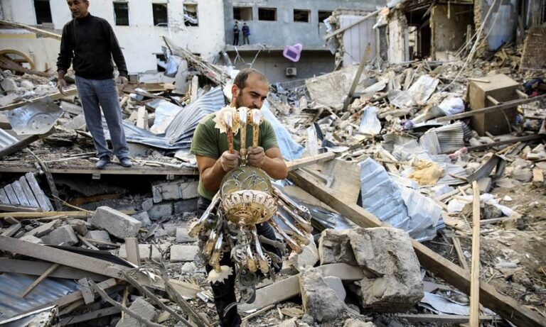 Um ataque com mísseis atingiu neste sábado (16), noite de sexta-feira no Brasil, uma zona residencial da segunda maior cidade do Azerbaijão, Ganja, e um morador declarou à AFP que sete vítimas foram tiradas dos escombros. O ataque ocorreu horas depois de Stepanakert, capital da região separatista de Nagorno-Karabakh, ter sido bombardeada.