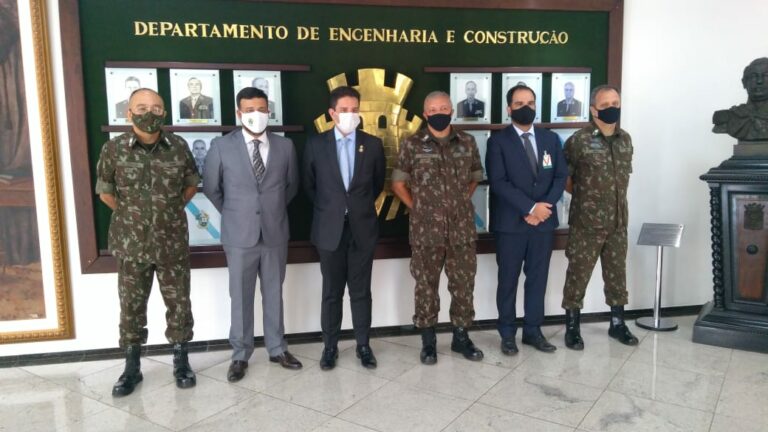 O governador Gladson Cameli se reuniu na manhã desta terça-feira, 6, em Brasília, com os generais que compõem o Departamento de Engenharia de Construções (DEC), na sede do Quartel General do Exército. A reunião serviu para que o governador solicitasse apoio logístico ao general Júlio César de Arruda, chefe do DEC, para o desmonte, transporte e montagem de três pontes de ferro para o Estado do Acre.