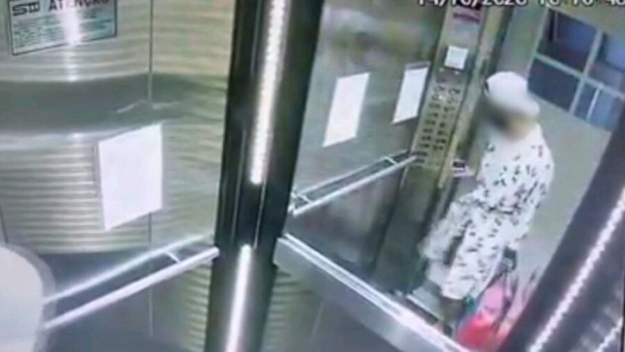 As câmeras de segurança do edifício registraram a entrada e saída do criminoso, que ficou cerca de 30 minutos dentro do apartamento. Ele aproveita o momento em que um morador sai do edifício e entra no prédio. Segundos depois, ele já aparece no elevador em direção ao apartamento.