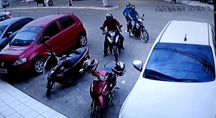 O assalto aconteceu no início da tarde deste sábado (17), na Avenida Santos Dumont, no centro comercial e agita da cidade de Epitaciolândia. Imagens de sistema de segurança registraram a ação dos bandidos que estavam em outra moto.