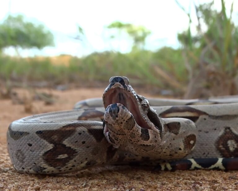 Acostumado a registrar inúmeras espécies com suas lentes nos mais variados lugares do Estado, desta vez o profissional conseguiu filmar uma cobra jiboia dando o seu bafo antes do bote.