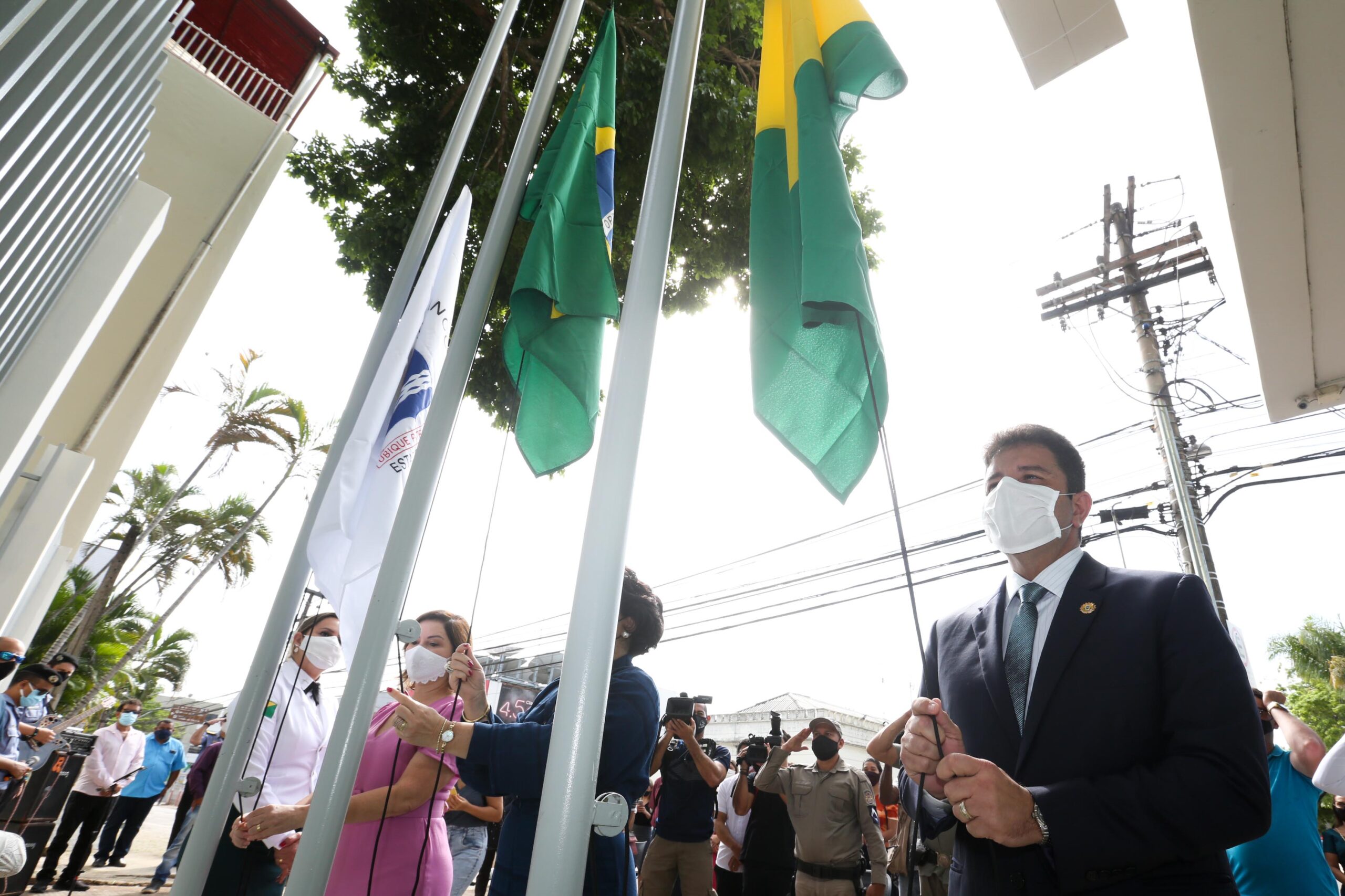 Na sede da prefeitura, autoridades se reuniram para uma solenidade de hasteamento de bandeiras ao som dos hinos Nacional e Estadual, além do descerramento do retrato oficial da prefeita Socorro Neri na galeria dos prefeitos.