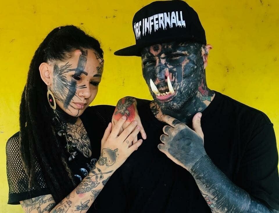 A esposa de Orc também se apaixonou pelo universo de tatuagem e modificações corporais ainda na adolescência.