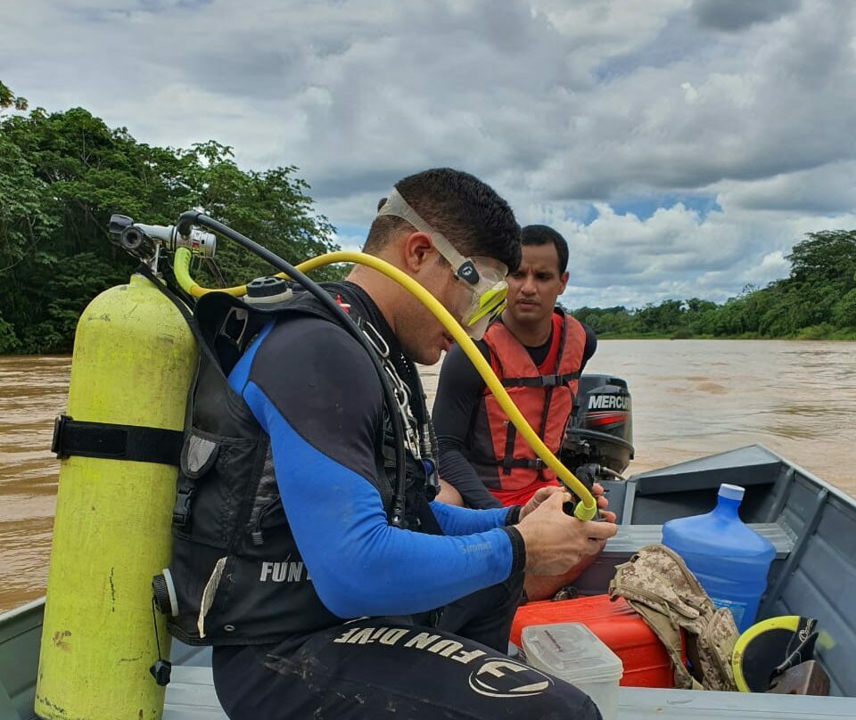 “A situação estava bem complicada, pois o rio está enchendo e descendo muitos balseiros, mergulhávamos e a correnteza nos arrastava mesmo estando com aproximadamente 100 (cem) quilos de peso”, disse o mergulhador.