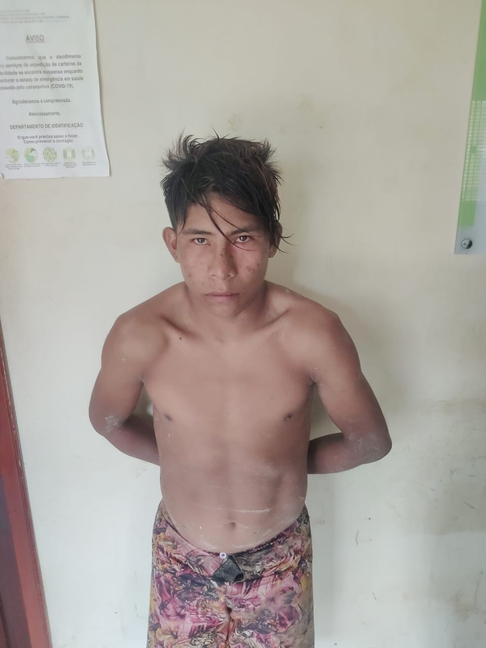 O indígena da etnia Kulina, identificado como Joaquim, de 20 anos, foi preso em flagrante após ter matado o próprio pai e o irmão, na tarde de quinta-feira (7), na Aldeia Brasília, nas margens do Rio Envira, zona rural de Feijó.