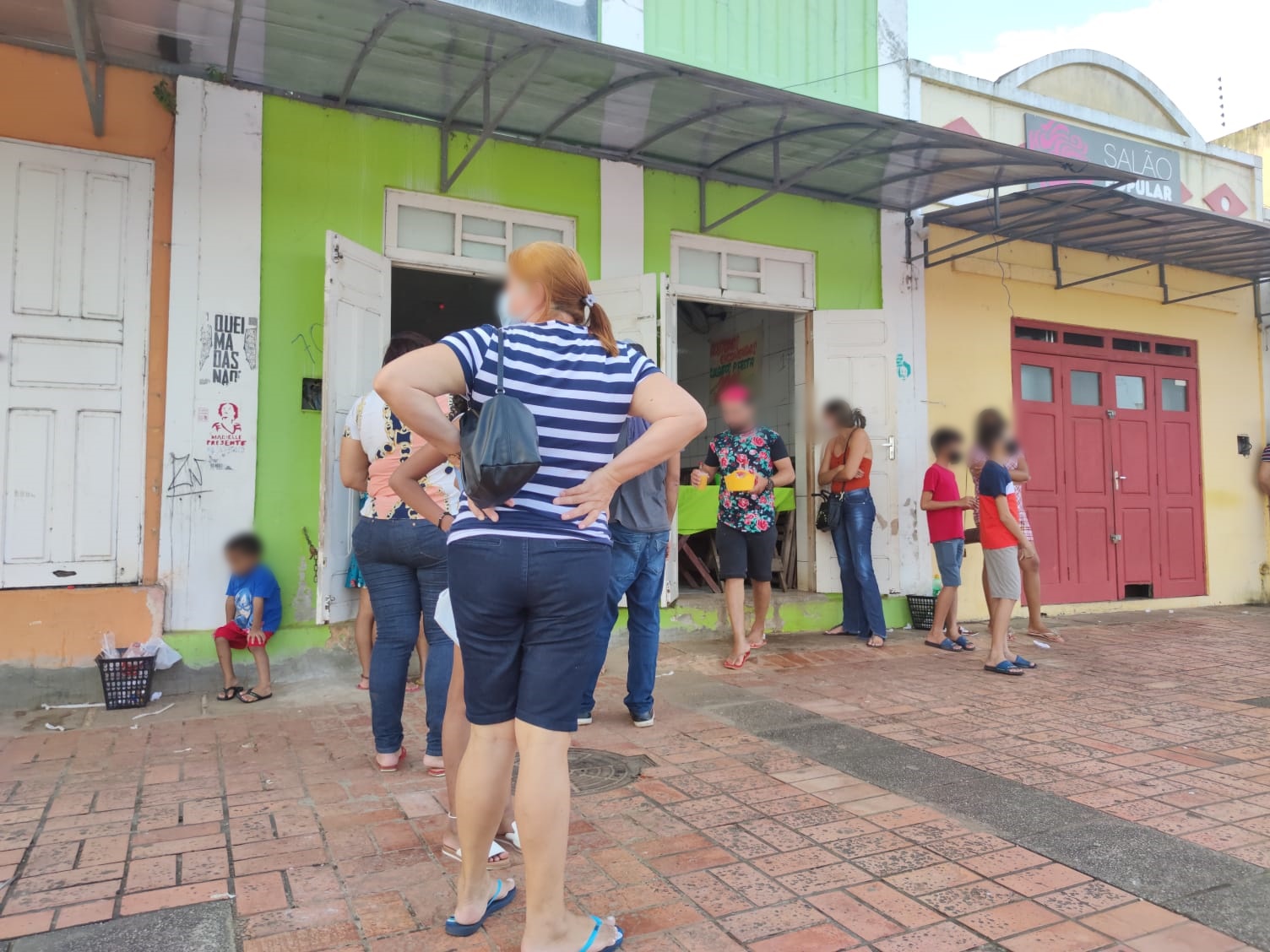 Na tarde desta quarta-feira (17) dezenas de pessoas se aglomeraram às margens do Rio Acre, em meio à crise sanitária ocasionada pelos casos de Covid-19 e dengue.