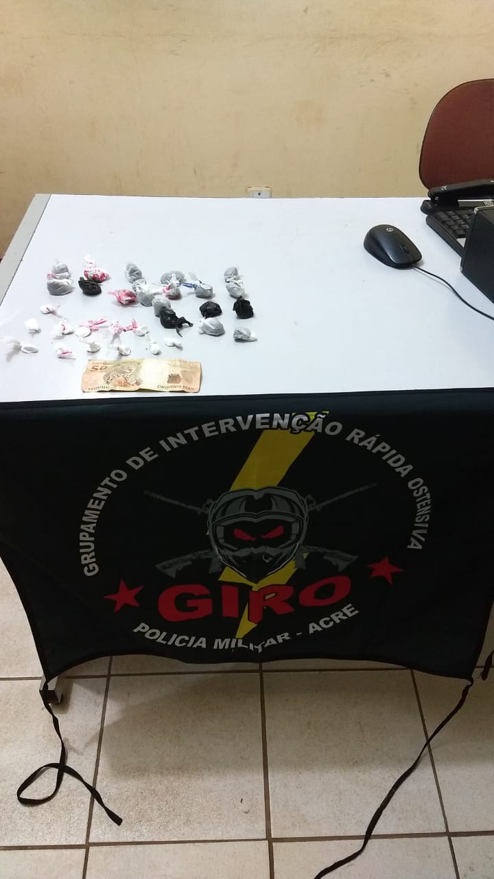 Já na noite de sábado, 27, uma guarnição do Grupo de Intervenção Rápida Ostensiva (GIRO) prendeu um homem com 20 tabletes de maconha e 12 trouxinhas de cocaína. A prisão ocorreu durante uma abordagem de rotina, na avenida Prefeito Rolando Moreira, em Brasileia.