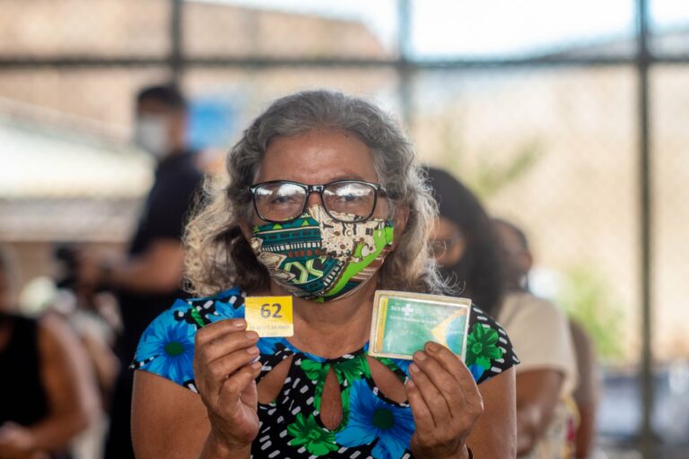 Segundo os dados publicados pelo Ministério da Saúde, Brasileia é o terceiro município que mais vacinou a população, seguindo os critérios do MS, dos grupos prioritários. Durante a vacinação de terça-feira a dona Raimunda Rodrigues de 61 anos recebeu a vacina de número 2 mil, desde quando foi iniciada a vacinação em Brasileia. “Estou feliz que tomei a vacina, proteger minha família, fiquei emocionada também. Protejo meus filhos, netos e bisnetos”, falou Raimunda Rodrigues.
