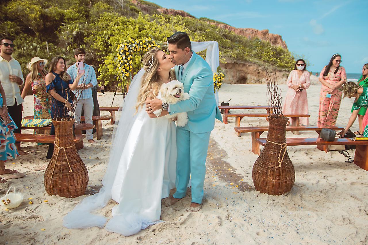 Jéssica Queiroga e Matheus Lira se casaram na praia, com direito a Pôr do Sol ao fundo durante os votos, pés descalços e suas famílias como testemunha. A cerimônia intimista aconteceu na terça-feira (2), na Praia Bela, em Pitimbul, Paraíba.