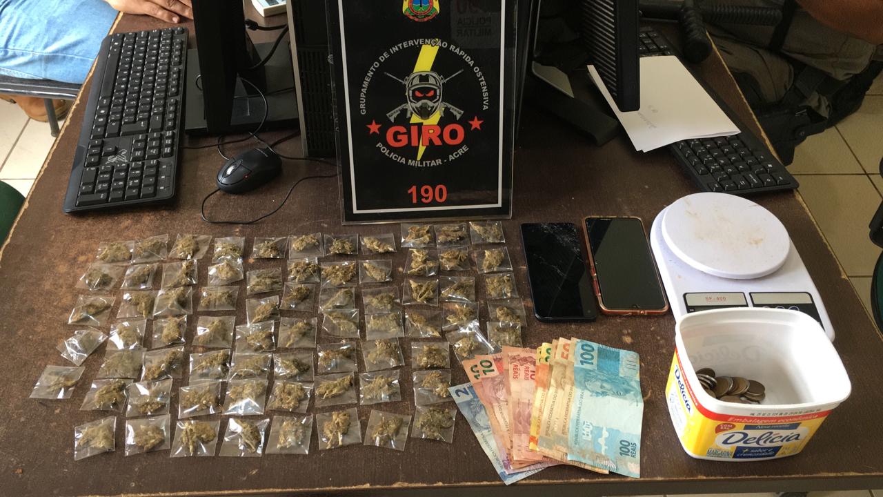 Militares do Grupo de intervenção rápida e ostensiva (Giro), apreenderam entorpecentes e dinheiro, no bairro João Eduardo II na tarde de quarta feira (31) enquanto faziam patrulhamento em uma região conhecida como “Beco do Adilio”. O local já é conhecido pela intensa comercialização de entorpecentes. Militares avistaram dois homens em atitude considerada suspeita.