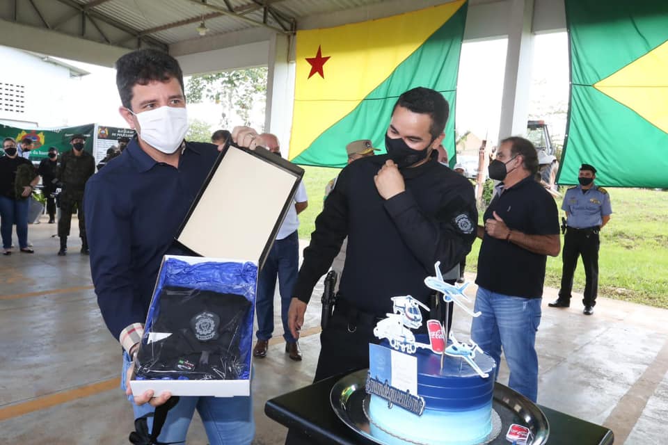 Durante a agenda, foram entregues duas viaturas para o Batalhão de Operações Especiais (Bope) e três para o Batalhão de Policiamento Ambiental. Também foi assinada a cessão de uma viatura do Instituto de Defesa Agropecuária e Florestal do Acre (Idaf) para a Polícia Militar.