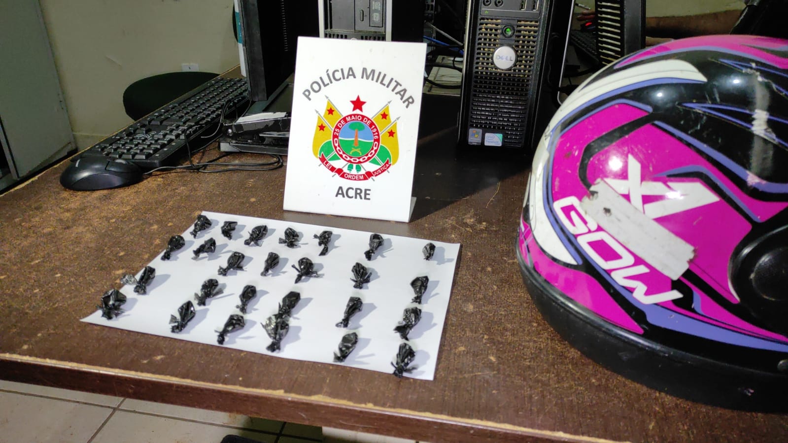 Foi feito um acompanhamento e os suspeitos foram interceptados. Na revista pessoal nada foi encontrado, mas os PMs observaram que um deles não queria falar com os agentes. Os militares mandaram o jovem abrir a boca e o acusado cuspiu cerca de 27 trouxinhas de cocaína. A motocicleta da dupla não possuía nenhuma restrição de furto e de roubo.
