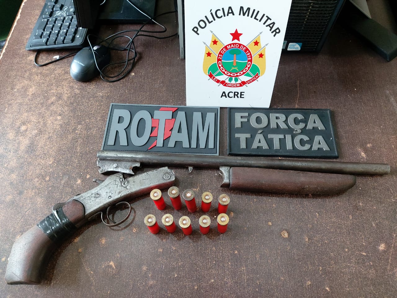 Ao chegar no local denunciado, os militares realizaram um cerco policial e pediram apoio da Batalhão de Operações Especiais BOPE, através da ROTAM. Foi feito pedido para entrar na casa na residência, a qual foi autorizada pela proprietária. No terreno, dentro de uma bolsa verde escondida atrás de uma caixa d’água, foi encontrada uma espingarda calibre 32 com 10 munições intactas.