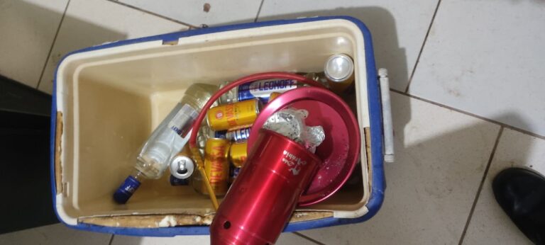Os PMs resolveram entrar no local e abordaram os demais participantes que estavam no interior do apartamento, mas acabaram encontrando drogas para o consumo pessoal e bebidas alcoólicas, além da caixa de som.
