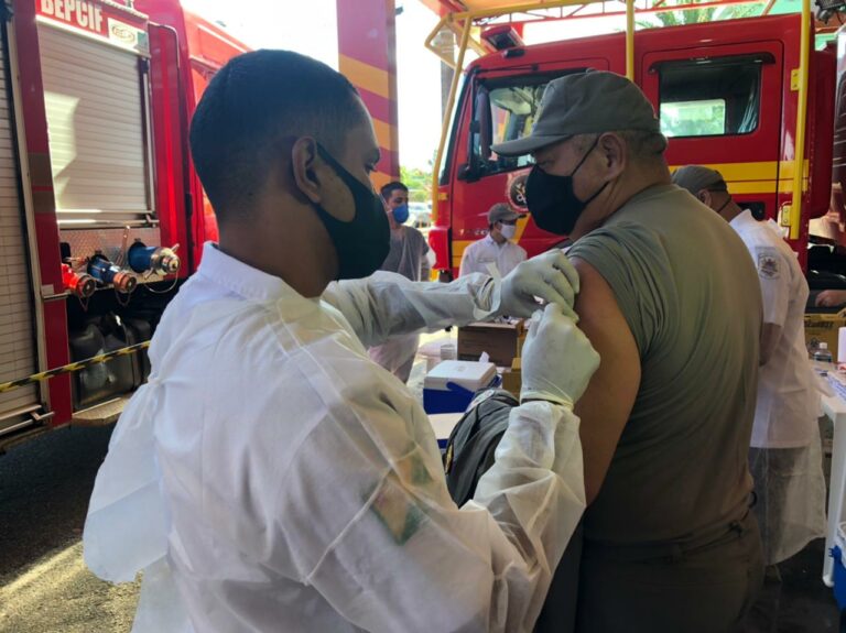 Iniciou nesta quarta-feira (7), no Comando-Geral do Corpo de Bombeiros Militar (CBMAC), em Rio Branco, a vacinação contra o coronavírus dos profissionais da Segurança Pública do Acre.