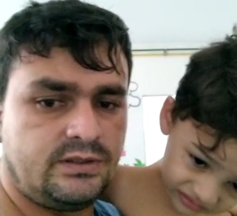 “Até ontem, quando entrei aqui meu filho era saudável, e agora ele não consegue nem ficar em pé. Está todo mole. Minha esposa não está aqui porque ela está grávida de oito meses e não pode está aqui. Amigos, eu não quero nada, só quero atendimento para o meu filho. Ajudem-me!“, disse o pai da criança.