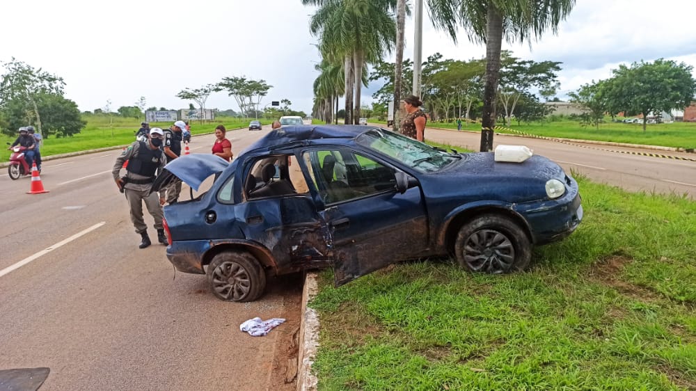 Sem “rumo”, o veículo acabou batendo na lateral de um carro modelo Nissan Versa, de cor branca e placa QLW-4E74, que estava sendo conduzido por um motorista de aplicativo. Após a colisão, o carro de Luciano subiu no canteiro que faz a divisão das pistas e colidiu fortemente contra uma palmeira.