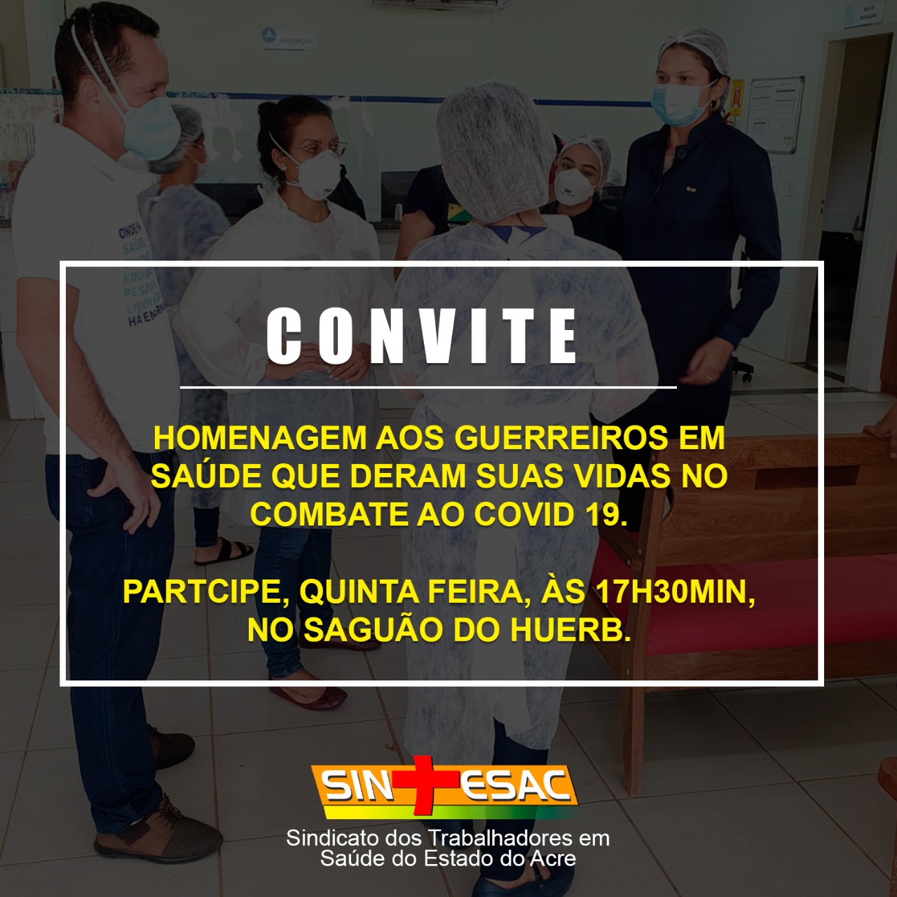 O Sindicato dos Trabalhadores em Saúde do Estado do Acre (Sintesac) convida o Governo do Estado do Acre, a Prefeitura Municipal de Rio Branco, a Secretaria de Estado de Saúde, a Secretaria Municipal de Saúde, todos os profissionais da área, bem como a população em geral, para participarem de um ato simbólico que ocorrerá no próximo dia 08 de abril.
