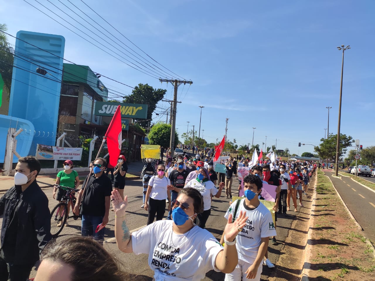 CAMPO GRANDE (MS) – O sábado (29) marcou ou ainda vem acontecendo pelo Brasil, a volta de manifestação de rua e em caminhadas, em protesto contra o presidente Jair Bolsonaro e todo seu governo. Apesar de ainda estar em um momento ruim da Pandemia do Covid 19, no Mato Grosso do Sul, não foi diferente, onde ocorreu manifestos nas duas maiores cidades, a capital Campo Grande e em Dourados. Na Capital, ao menos 1000 pessoas, se reuniram na manhã de hoje, contra os cortes de recursos na Educação, pedindo a vacina para todos e pelo Impeachment do chefe do executivo federal.