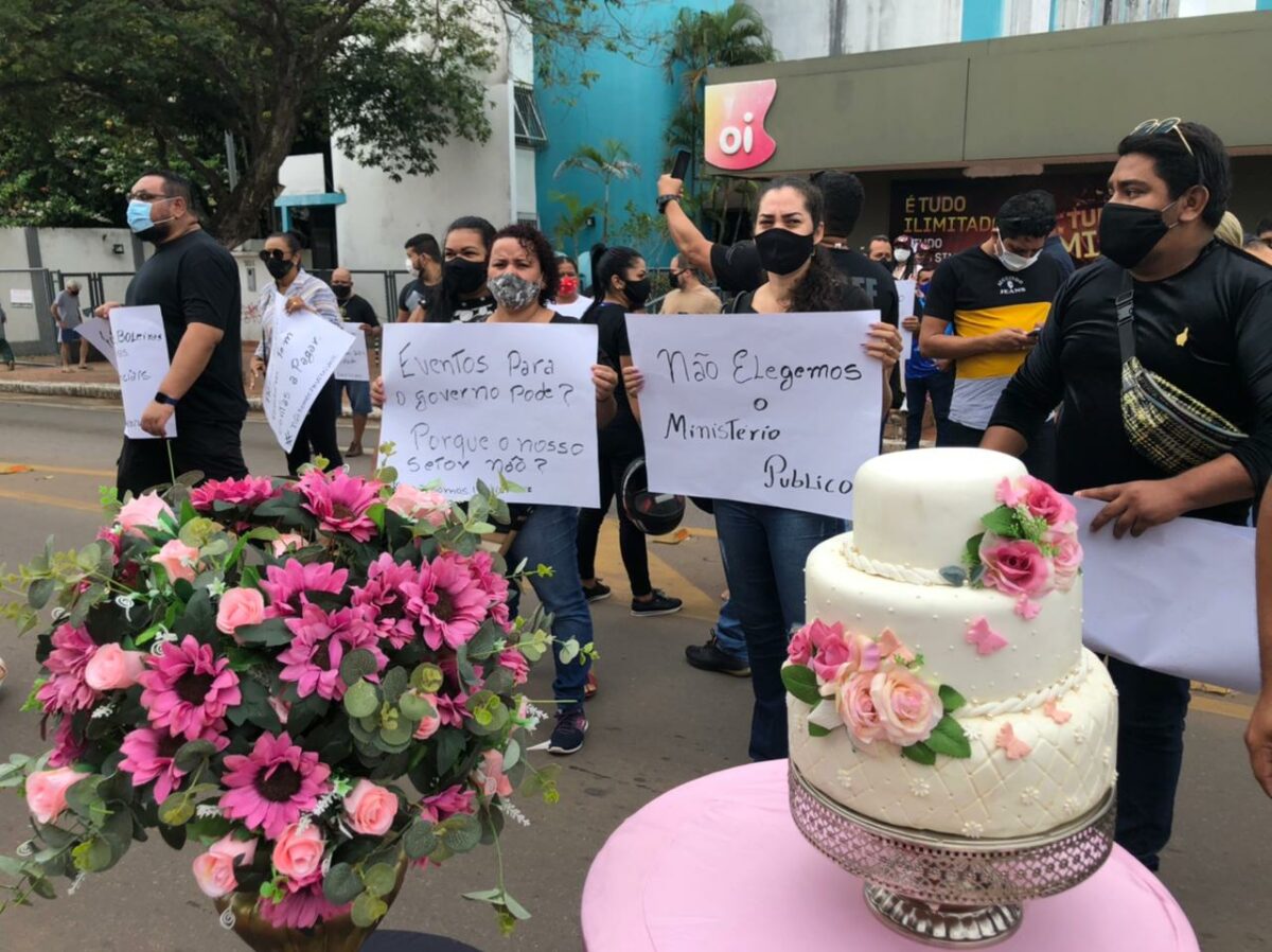 Proprietários de buffet, bares e restaurantes, além de profissionais do ramo de eventos em Rio Branco, realizaram um protesto em frente à Casa Civil, na manhã desta terça-feira (11).