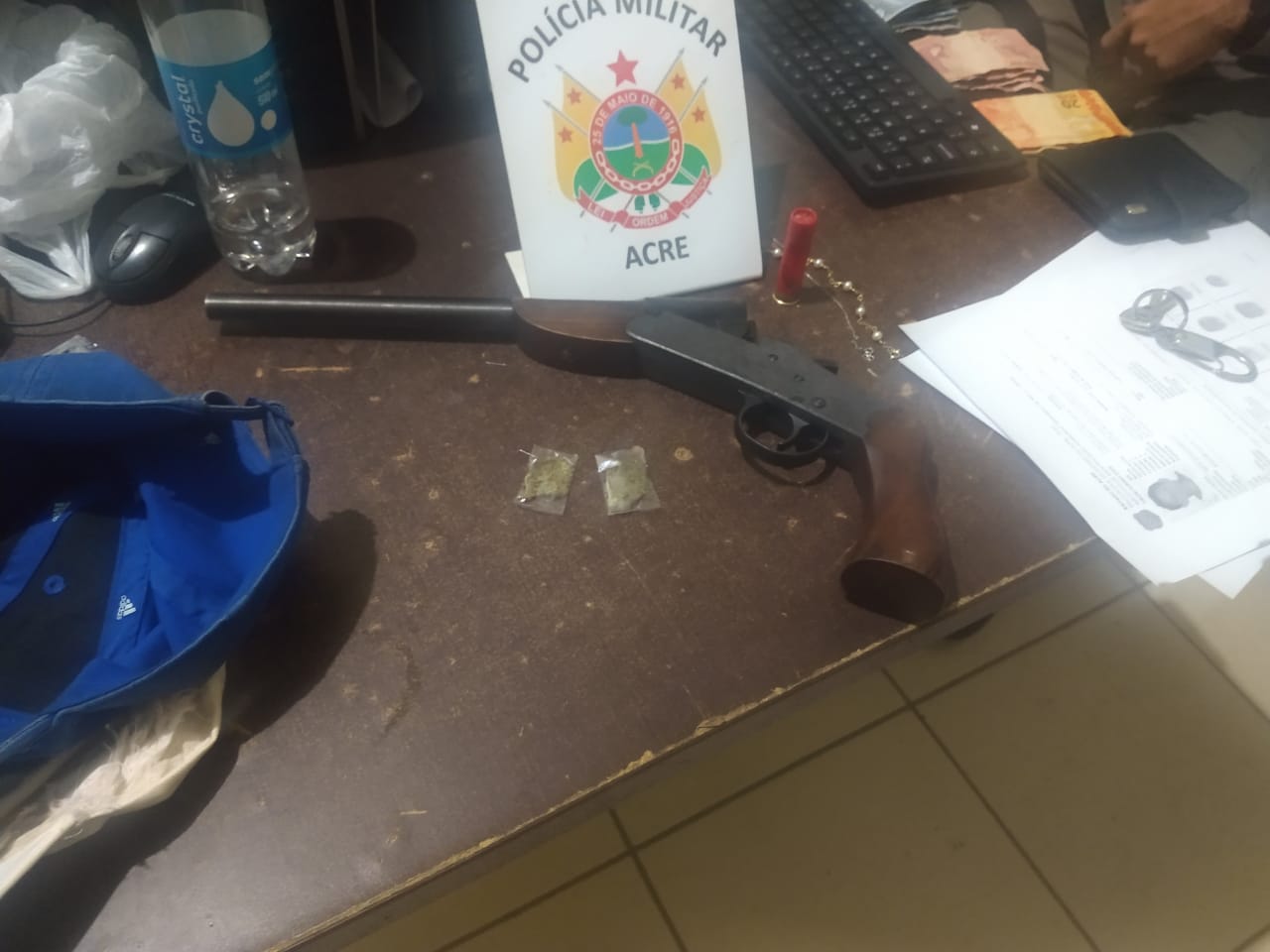 A guarnição apreendeu um escopeta calibre 28 com um cartucho intacto, e ainda recuperou o dinheiro, os celulares e todos os objetos roubados. A ocorrência foi encaminhada à Delegacia de Flagrantes (Defla).