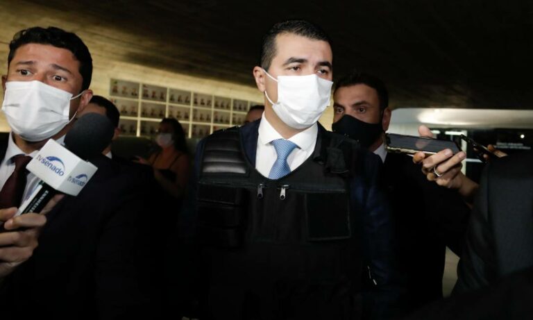 O deputado federal Luis Miranda (DEM-DF) chegou ao Senado Federal vestindo um colete à prova de balas e carregando uma bíblia. Ele e seu irmão, Luis Ricardo Miranda, servidor de carreira lotado no Departamento de Logística do Ministério da Saúde, prestarão depoimento na CPI da Covid nesta sexta-feira.
