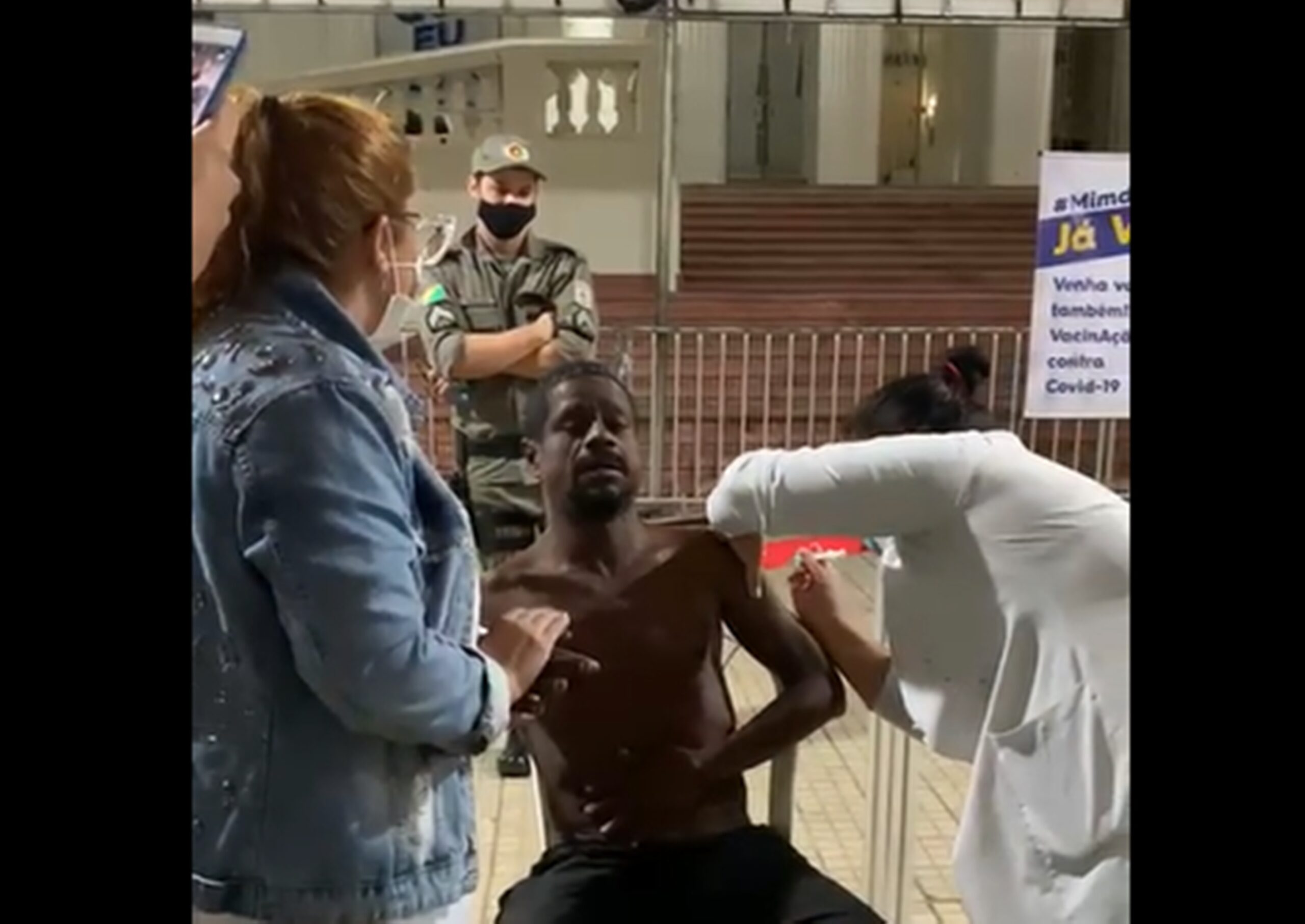 Entre as milhares de pessoas vacinadas no sistema e “drive thru” na frente do Palácio Rio Branco, nas últimas 48 horas, está o morador de rua da Capital conhecido como “Nego Bau”, de nome e idade desconhecidos. Ele foi imunizado contra o coronavirus na madrugada deste sábado (19), poucas horas antes de a vacinação no local ser encerrada.