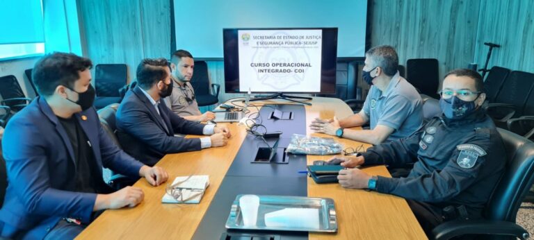 Também foi oportunizado ao Acre fazer a apresentação do Curso Operacional Integrado – COI, na pessoa do policial penal Kiluy Daniel ao major PM Henrique, assessor direto do gabinete da Secretaria de Segurança, Defesa e Cidadania de Rondônia (Sesdec). A ideia é estabelecer um termo de cooperação e realizar intercâmbio profissional nas áreas de treinamento e capacitação de pessoal. A Sesdec também ofertou parceria para aquisição de materiais bélicos.