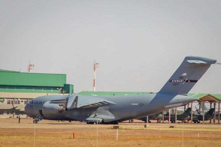 Duas aeronaves, do tipo C-17 Globemaster (uma das maiores do Mundo), da Força Aérea dos Estados Unidos (USAF), aterrissaram em Campo Grande, neste sábado (21). Os aviões transportaram dois helicópteros e soldados norte-americanos, que participarão do Exercício Conjunto Tápio 2021, que simulará cenário de guerra, em treinamentos.