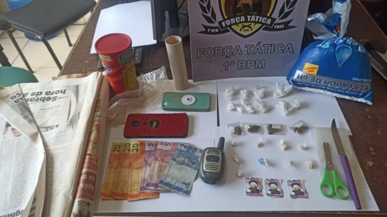 Policiais militares da Força Tática do 1° Batalhão estavam fazendo um patrulhamento na região quando receberam uma denúncia em via pública que uma casa estava sendo usada como “boca de fumo”.