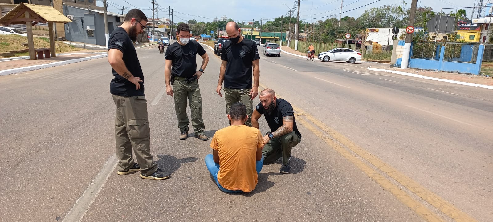 O homem estava sentado no meio da avenida, enquanto esperava que algum veículo o atropelasse. Um equipe da Polícia Civil passou pelo local no momento em que o homem estava sentado e convenceu o rapaz a desistir da ideia.
