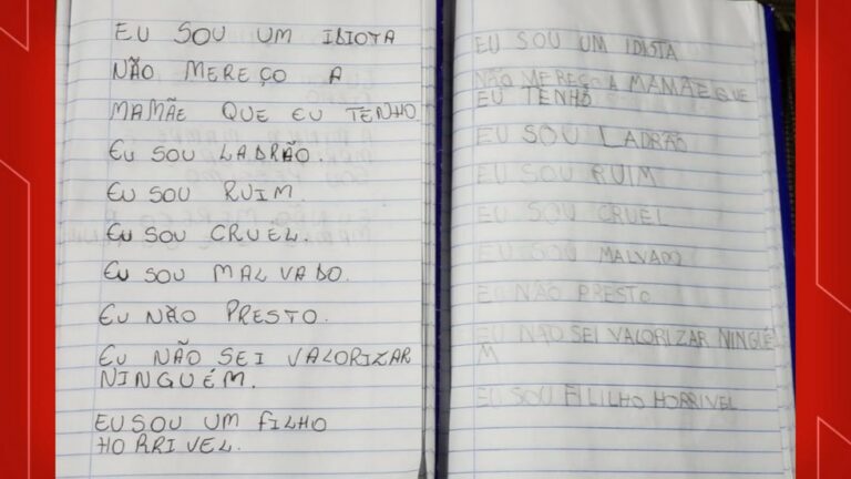 Segundo o delegado Antonio Carlos Ractz, Miguel era obrigado a copiar frases como “eu sou um idiota”, “não mereço a mamãe que eu tenho”, “eu sou ladrão, “eu sou ruim” e “eu sou um filho horrível”.