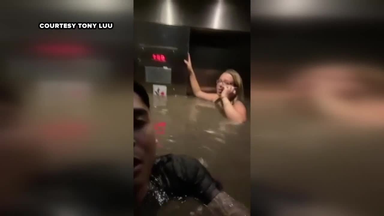 “Assim que [a água] chegou à barriga, pensamos, ‘OK, isso é real’”, disse Luu à ABC News. “Era como algo saído de um filme”, continuou. Os vídeos produzidos pelos amigos mostram o elevador dando um solavanco e sendo tomado pela água, que entrava pelo piso e pelas portas fechadas.