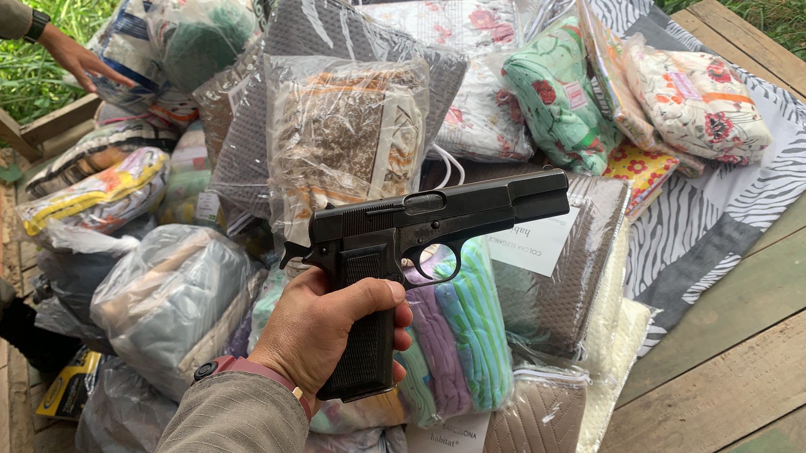 Ao avistar a guarnição, Jhonatan apontou aos PMs uma pistola 9 mm com 13 munições e acabou recebendo cerca de 7 disparos por parte dos militares, mas nenhum acertou o bandido que em seguida se rendeu e teve a arma apreendida.